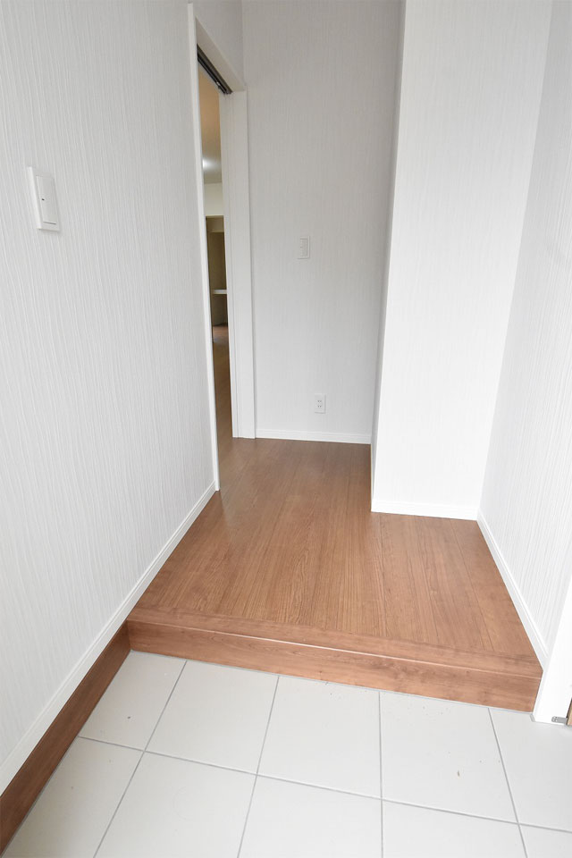 | ご高齢の方がお住まいになられますのでなるべく段差を少なくし、デッキは掃き出し窓との段差は無しで、玄関ポーチの蹴上げも極力緩く計画しました。 |