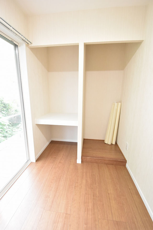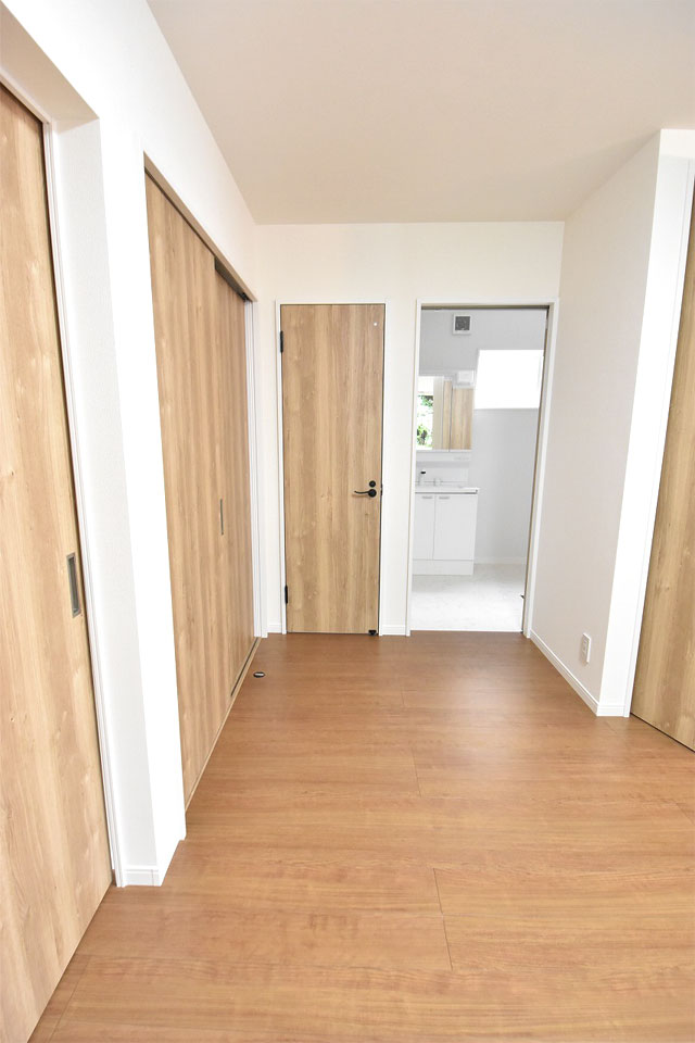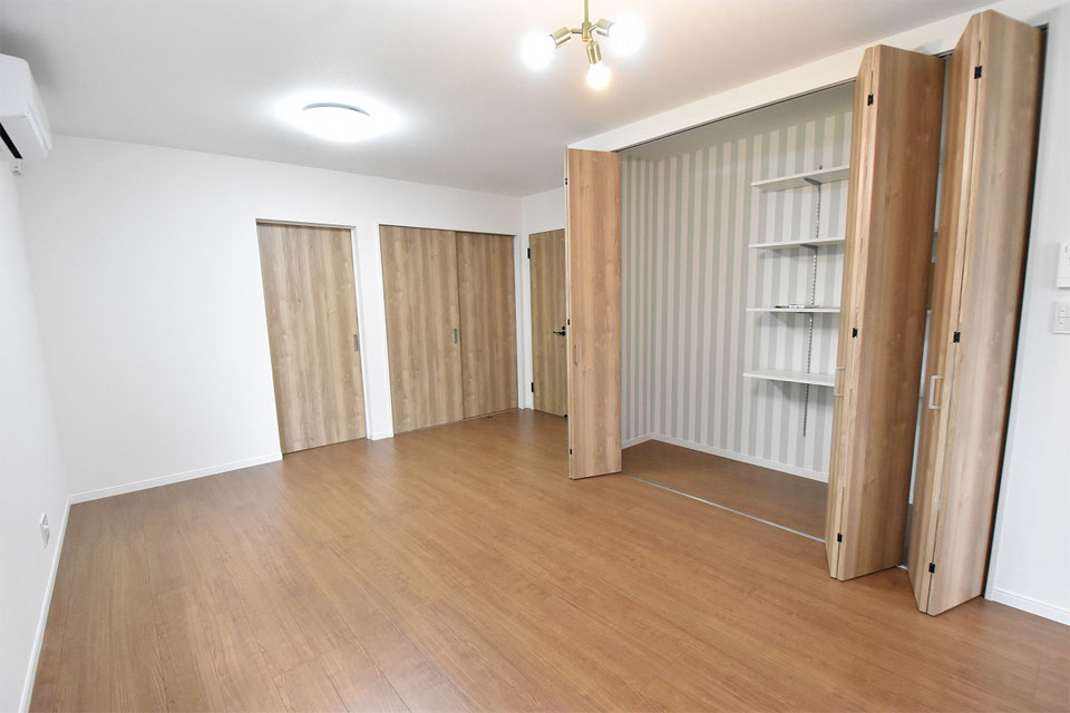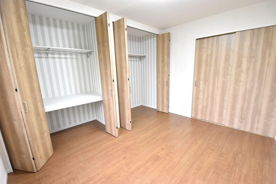 | 洋室のクローゼットはもちろん、玄関わきに物置兼シューズクローゼット、LDKに大きめの収納スペースなど、各部屋に隠せる収納のスペースを配置しました。 |