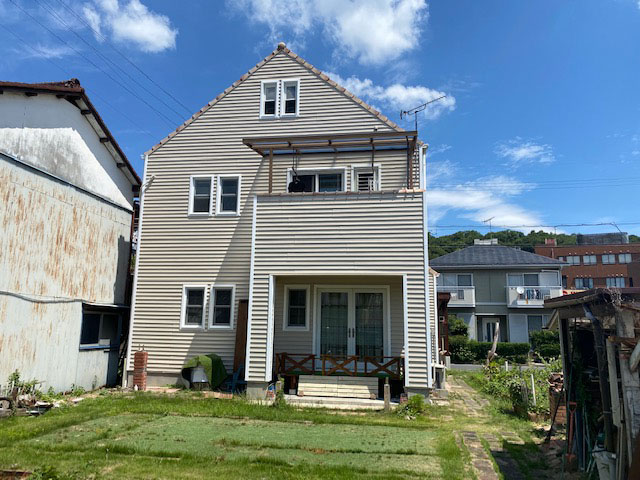 | 私どもの事務所までお打ち合わせに来たいただいた際に、近くで建築させていただいた樹脂サイディング仕上げの建物をご見学いただきお決めいただきました。建物の雰囲気やイメージはあまり変えないよう、優しい色合いのベージュ系で施工いたしました。 |