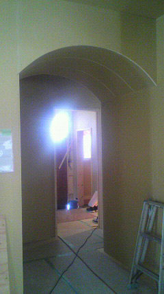 洗面所の入り口もアーチになり、洗濯機置き場の仕切りもできていました。 |