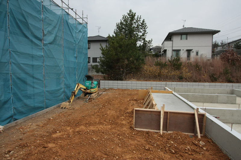 初レポートです。間取りの印がついただけの状態では狭く見えましたが、コンクリートが入ってみたらずいぶんと広く見えて驚きました。