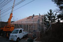 こうしてみてみるとホントに大きいですね。基礎しかなかったときとは違ってかなり大きく感じました。北面からの大きい屋根の雰囲気もいい感じですね。これからも安全によろしくお願いします。