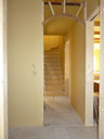 玄関に向かうタイル張りの階段も。玄関横のアーチ下にも、レンガを並べてもらいました。 |