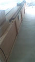 家に入れば、キッチンが完成間近です。カウンター下の収納ができて、かなり可愛さアップですね。パントリーの収納棚も出来上がりました。奥の壁紙は、由ホームさんのホームページの施工例の写真で一目ぼれしたもの。わがままを聞いて頂いてありがとうございます。 |