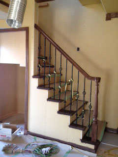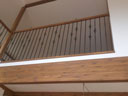 階段、吹き抜けには、アイアンと木を組み合わせた手すりを。吹き抜けの手すりはちょっと高めなので、高いとこが怖い人でも大丈夫ですね。木のパーツもすべて、綺麗に塗って頂きました。 |