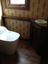 「どちらのトイレも花柄のトイレは、嫌だ!」と言っていた主人も満足だそうです!2階のトイレのクロスは子供部屋に勧めたものが、トイレにくるとは思いませんでした。洗面脱衣室は暗いお部屋だったので、レース調のものにしました。素敵なお部屋になりました。クロス屋さんの皆様、夜遅くまでありがとうございました。m(._.)m |
