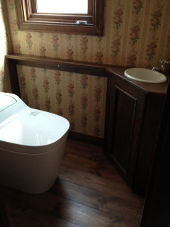 居間のダマスク模様に始まり、大柄だけど茶系のセピア色のフラワー模様のトイレ、凹凸のあるレース布調の洗面所、寝室の壁1面のみのチャイナ風の花模様など、色々な方に見ていただきたい仕上がりになり私もとても満足しております。 |