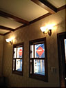 そしてこれは、とってもお気に入りのステンドグラスです。階段を上がった正面の壁に設置して頂きました。横井さんや監督さんの想像より、ずいぶん大きなものを購入してしまってすみません。(笑)綺麗に入れて頂いてありがとうございます。