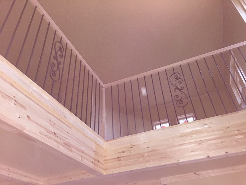 内部は階段の手摺とアイアンがついていました。これで吹き抜けから落ちる心配はないですね。下から見上げてもすごくかっこいいです。