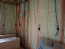 この前の連休に見に行ってきました。ウレタンが終わっていて、中にも入る事ができたので、2階まで全体を見てくる事ができました。木と木の間のすき間も、しっかりと埋めてありました。お風呂も、ウレタンのおかげで温かい様なので安心です。