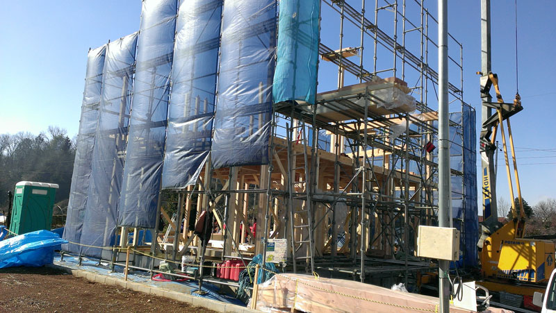 次回のお打ち合わせの頃には足場とシートが取れ、全景をご覧いただけると思います。楽しみですね!! |