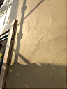 外壁下地の軽量モルタルは塗ってから2週間ほどで硬化し、割れるところと割れないところがはっきり出ます。その後に割れた部分の処理(ノーブリーディングの変性シリコン)をし、全体にフィーラー(目止めと防水)を塗って仕上げの塗装に入ります。その後に窓下の飾りの木を取り付けます。形状とお色目はこれからのお打ち合わせになりますので、どうぞよろしくお願い致します。