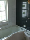 7月末にユニットバスが設置されました。ブルーのタイル調のタイプで、トクラスのものです。とても涼しげできれいです。 |