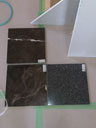 モザイクタイルのサンプルも見せてもらいました。モデルハウスの洗面が好きで、同じものに…。タイルが貼られるのが待ち遠しいです。 |