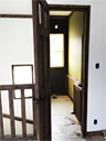 玄関の方の扉はまだ色が塗られていません。母が平日に様子を見に来た時に大工さんに聞いたところによると、次の月曜日から塗装の作業に入るとのこと…塗装をしてから取り付けをすると勝手に思い込んでいたので、ちょっと驚きました。 |