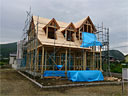 13日に見に行って来ました。窓が入り、瓦を乗せて貰っている所でした。外観も以前より進んでいて、玄関やデッキのアーチが出来た事で、柔らかさが出た様に思います。瓦が全体に乗ると、また雰囲気が違うと思うので楽しみです。 |