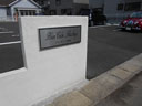 横幅90cmでそれほど大きいものではありませんが、駐車場入り口の塀についておりますので少しはわかりやすくなったかな…というところです。あまり派手なデザインにせず、モノトーンでシックに仕上げました。 |