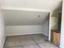 1階の腰板部分の塗装が終わり、クロス工事も終了しました。各室、こだわりのあるかわいいクロスをお選びになりました。 |