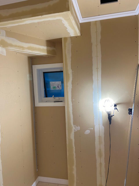 木工事が終わり、手すりや建具の塗装も終わりました。この後、クロス張り工事に入ります。