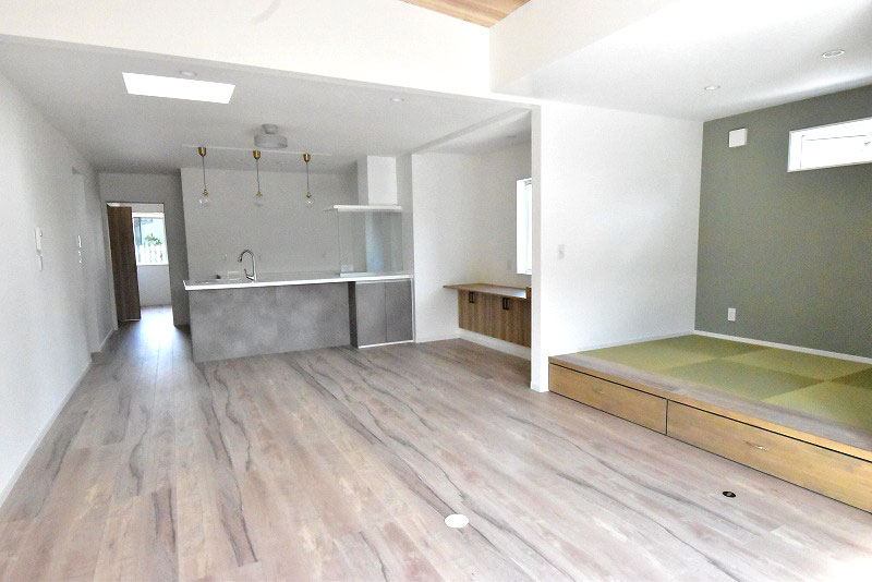 鉄骨3階建て構造ですので、間仕切り等は自由に変更ができました。段差のある敷地で2階部分に玄関があり、その階に水回りとDKと和室があったため、それらすべてを改装します。