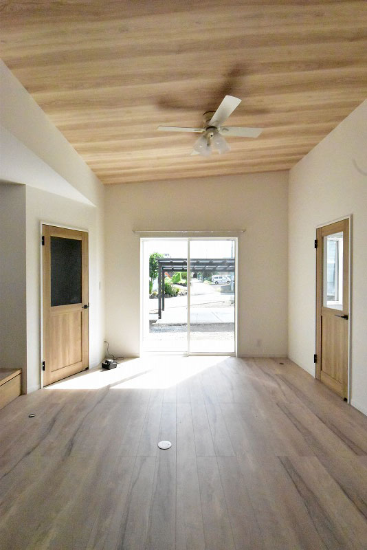 平屋のためワンフロアーに個室、LDKなどすべてが配置されますので、どうしても通路(廊下)部分が長めになり、採光を工夫しなくてはなりません。K様邸では中央部分に配置される廊下が暗くならないように、トップライトを設置しました。
