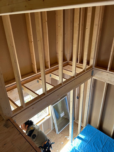 上棟が無事終了し、20日から造作に入っています。24日現在でサッシの取り付けが終わり、電機配線も完了しました。
