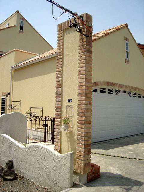| 外観はメープルホームズでいうサンタフェ風ですが、お施主様のご希望が「あまりコテコテした塗り壁調ではなく、明るめの色調でスッキリと仕上げたい」との事でしたので、コテむらを少なくした塗り壁と軒、破風を出さない屋根で全体を統一しました。 |
