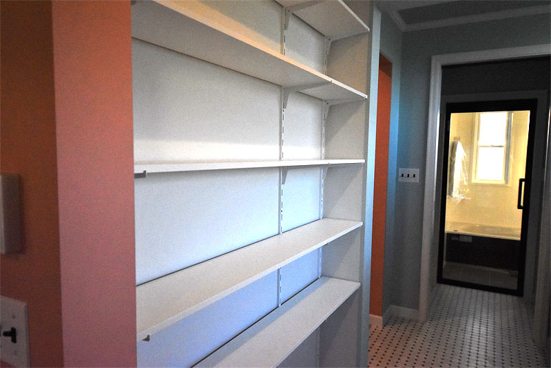 | 内部はキッチンと洗面台が造作となりました。キッチンはダイニングテーブルと高さを合わせた一体型となり、床を少し下げた設計となります。キッチン西面の収納部分は、約6mの長さの収納スペースを造作します。 |