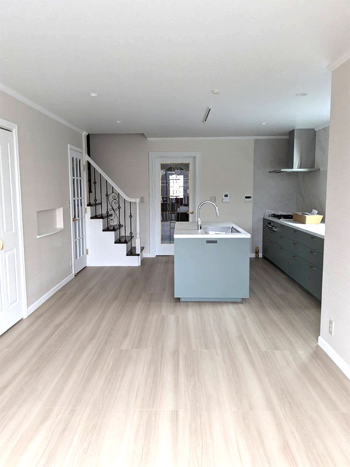 | 岐阜市内で、2階(玄関のフロアー)の改装工事が完成いたしました。H様は古い知り合いで、お子様の手が離れたのを機に改装のご相談をお受けしました。海外で生活されていた期間があり、改装もそのようなイメージでとのご要望がありました。 |